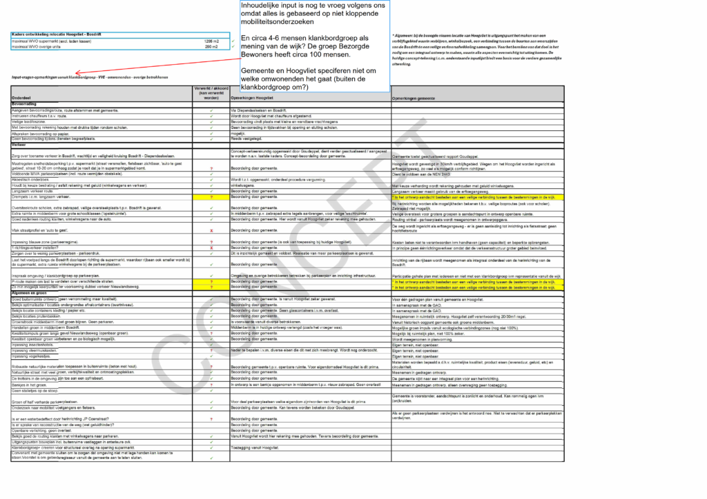 De aangepaste inputplanning op de website van Hoogvliet 19 juni 2025:
