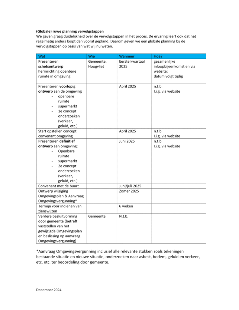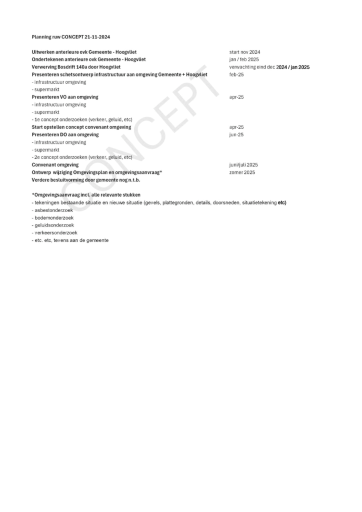 De onderstaande inputlijst en ruwe planning zijn van december 2024, via een WOO verzoek achterhaald.
