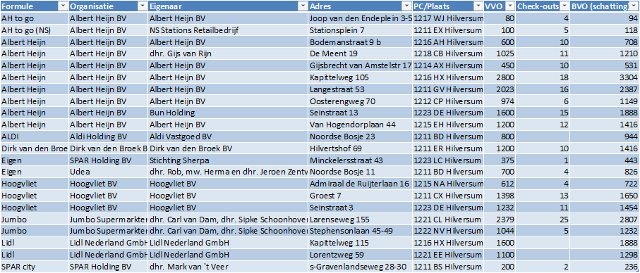 De exacte waarde varieert per winkel. Voor supermarkten >1.000 m2 is de schatting 81-84% VWO in WGO en de tabellen hiervoor laten per winkel verschillen zien.
