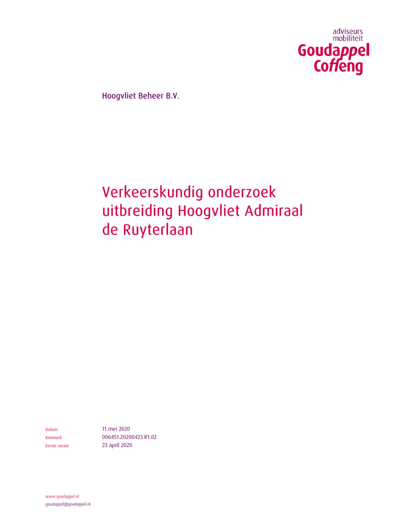 Verkeerskundig onderzoek (Mobiliteit) Admiraal de Ruijterlaan.