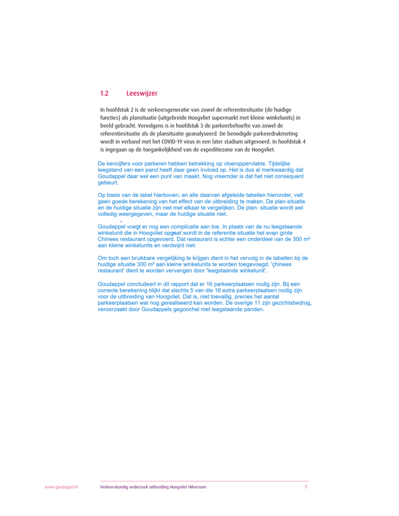 In het rapport hebben wij onze bevindingen, vragen en opmerkingen geplaatst (zie de geel gearceerde tekst en tekst in blauwe letters). Zo kun je zien waarom de plannen volgens ons niet kunnen.